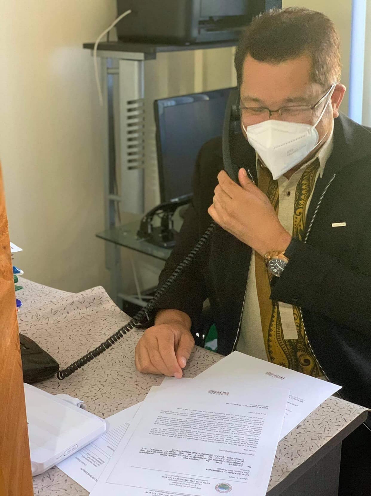 PHOTO: San Remigio, Antique Municipal Mayor Hon. Mar Mission Jr. tests PLDT landline in his office